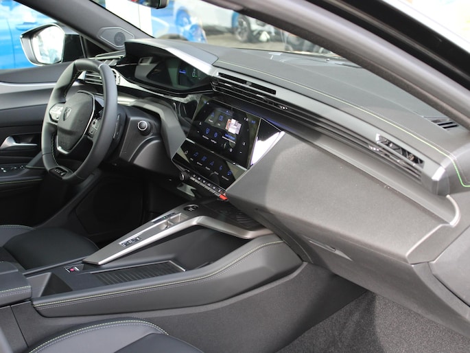 U voelt de onbeperkte kracht van elektrische aandrijving, elke keer als u op weg gaat met deze Peugeot e-308 SW. Met de elektromotor rijdt u stil en snel de toekomst in. Maar ook schoon en zuinig. De massagefunctie van de verwarmbare voorstoelen is een heerlijke extra optie, waarmee u uw rug en die van de bijrijder een groot plezier doet. Stevig ondersteund door de sportstoelen blijft u bij elke beweging op uw plek. De bagageruimte is toegankelijk via een comfortverhogende elektrische achterklep. Aan een fijn opwarmertje in de kille dagen is gedacht, in de vorm van een verwarmd stuurwiel. Dankzij de matrix LED-verlichting geven de koplampen ook in het donker daglicht. De uitmonstering van deze auto wordt gecompleteerd door onder meer 18 inch lichtmetalen velgen, geluidsisolerende ramen, sportinterieur, in delen neerklapbare achterbank, LED-achterlichten en verstelbare lendensteunen.
