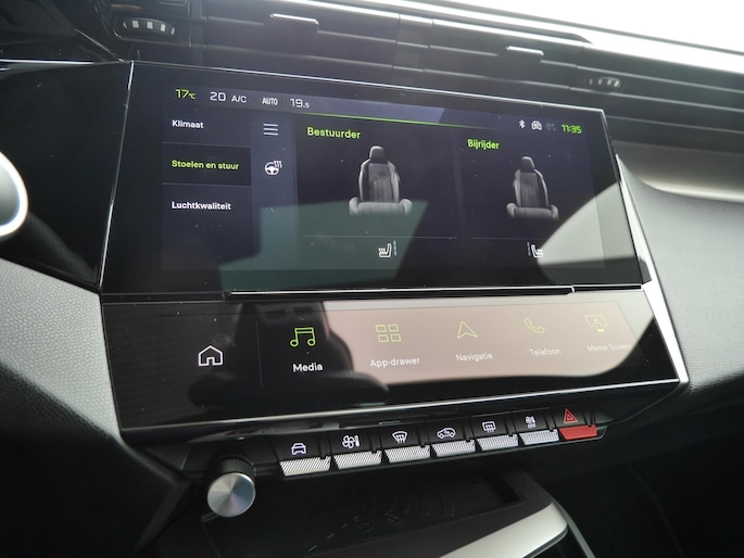 Deze Peugeot biedt u niet alleen comfort en rijplezier, maar ook veiligheid. Actieve veiligheidssystemen houden voor u de weg in de gaten en reageren op onvoorziene situaties voordat u dat kunt. Jachtvliegers weten het al jaren: belangrijke info projecteer je in je zichtveld zodat je je hoofd niet meer hoeft te draaien. De hier aanwezige head-up display doet precies hetzelfde! De actuele snelheidslimiet, een inhaalverbod en andere verkeersborden. De verkeersborddetectie ondersteunt u tijdens elke rit. Het Lane-keeping systeem zorgt dat u mooi binnen de lijntjes blijft. Ongemerkt buiten de rijstrook komen is er niet meer bij. De auto is ook uitgerust met dodehoekdetectie, forward collision warning system, hill hold functie, brake assist, vermoeidheidsherkenning en bandenspanningcontrolesysteem.