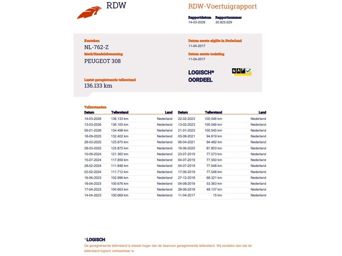 Kilometerstand gecontroleerd