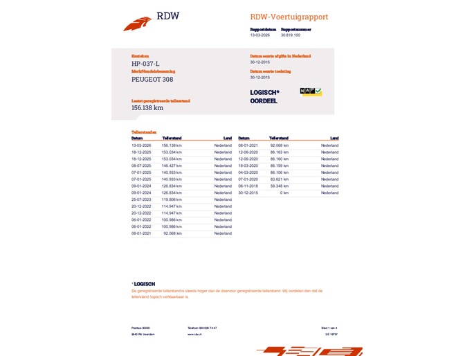 Kilometerstand gecontroleerd