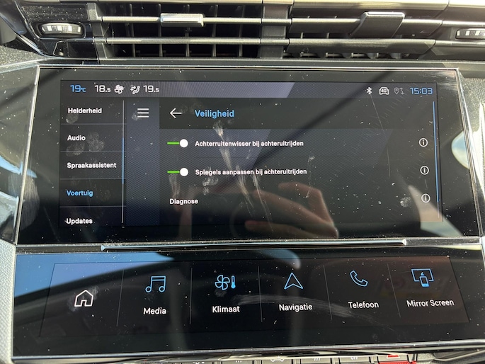 Het digitale dashboard zorgt voor een super functionele display van reisinformatie. Elk van de vier camera's op deze auto draagt bij aan het creëren van een onbelemmerd uitzicht van 360 graden rondom de auto. Adaptive cruise control houdt de ingestelde snelheid vast en houdt automatisch afstand tot uw voorligger. De radio harder of zachter zetten of iemand uit uw contactenlijst bellen. Dankzij de spraakbediening doet u dit allemaal met uw stem. Waar u zelf ook bent, u staat altijd in contact met de auto via de app op uw smartphone. Zo controleert u uiteenlopende functies, ook op afstand. U bent in deze Peugeot ook voorzien van navigatiesysteem, achteropkomend verkeer waarschuwing, electronic climate control, draadloze telefoon oplader, DAB ontvangst en regensensor.