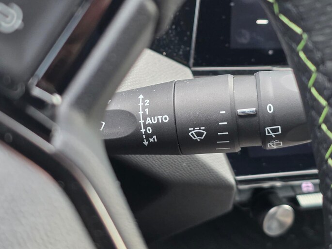 - Dashboard, middenconsole en stuurwiel afgewerkt met groen stiksel