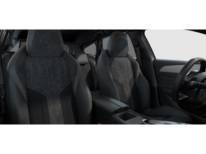 Compact, met generfd en geperforeerd leder bekleed 'GT' stuurwiel met geïntegreerde bedieningsknoppen, stiksels in groen Adamite