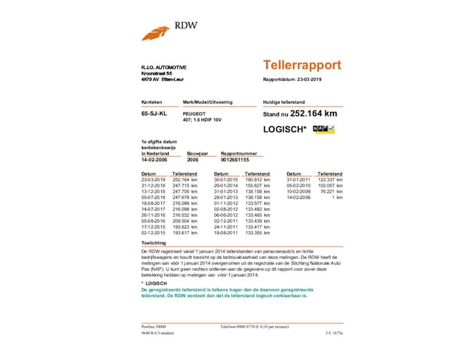 Kilometerstand gecontroleerd