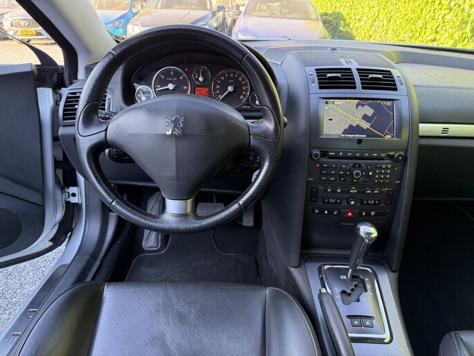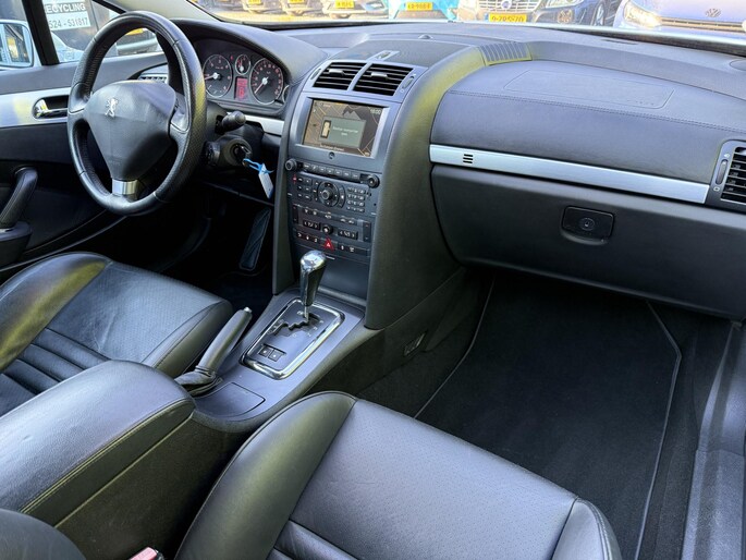 Comfort, souplesse, charme en hoge kwaliteit? Tja, je moet ervan houden natuurlijk... Maar dan kom je vanzelf uit bij een Frans merk. De krachtige motor geeft deze Peugeot uitstekende prestaties. De auto is voorzien van een mooie en comfortabele lederen bekleding. Tijdens gure dagen is het prettig zitten in de verwarmbare voorstoelen. In het interieur domineren de sportstoelen, die er niet alleen stijlvol uitzien, maar die jou ook optimaal ondersteunen tijdens de rit. In het donker zorgt de xenonverlichting voor een goed zicht op de weg. Tot de voorzieningen van deze auto behoren 18 inch lichtmetalen velgen en getint glas.