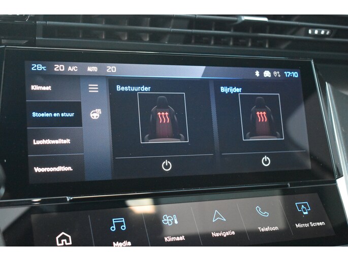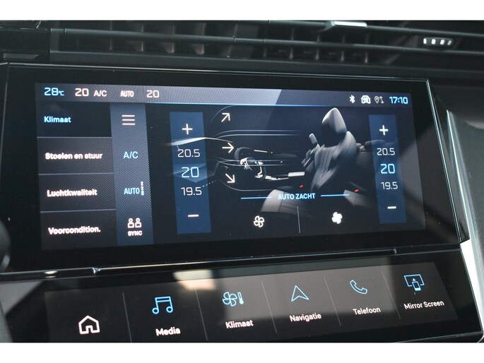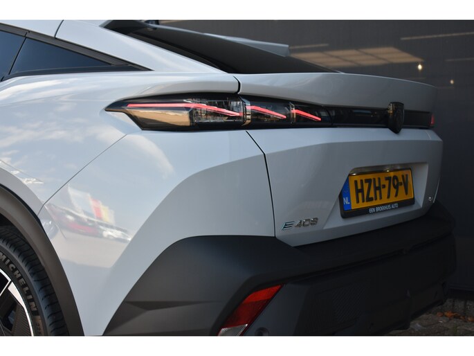 Met de Peugeot e-408 kiest u voor het rijplezier van de toekomst. De volledig elektrische aandrijflijn zorgt voor krachtige prestaties en een sensationeel acceleratievermogen. Bent u ook toe aan een auto met elektromotor? Goeie keuze! Het is vermeldenswaard dat deze auto maar 7525 kilometer heeft gereden sinds 2025. Een krachtige motor geeft deze auto zijn sportieve prestaties. Een weldaad voor u en uw bijrijder: deze Peugeot e-408 heeft verwarmbare voorstoelen. De sportstoelen zorgen ervoor dat u goed en comfortabel zit, ook als het gas erop gaat. De bagageruimte is toegankelijk via een comfortverhogende elektrische achterklep. Comfortabel houvast krijgt u van het verwarmd stuurwiel. De koplampen met matrix LED-verlichting geven daglichtkwaliteit zonder tegenliggers te hinderen. Verder is de Peugeot uitgerust met: 19 inch lichtmetalen velgen, sportinterieur, extra getint glas, in delen neerklapbare achterbank en verstelbare lendensteunen. Deze auto is voorzien van een digitaal dashboard waarmee u de cockpit-interface kunt personaliseren. Met de hulp van vier camera's, biedt de 360 graden camera op deze auto een panoramisch zicht, wat bijzonder nuttig is bij het parkeren en manoeuvreren. Met adaptive cruise control houdt deze auto automatisch afstand tot uw voorligger. Spraaksturing maakt het eenvoudiger en veiliger om deze auto onderweg te bedienen. Wat is de onderhoudsstatus van deze auto? U checkt het snel, simpel en overal via uw smartphone. Ook full map navigatiesysteem, electronic climate control, DAB ontvangst, keyless entry en automatisch dimmende binnenspiegel zijn aan boord. Met de nieuwste technologieën aan boord is deze Peugeot in staat om zelf te reageren op potentieel gevaarlijke situaties op de weg. Dashboardinfo checken zonder uw ogen van de weg te halen? Dat kan met de head-up display. Tijdens de rit hebt u altijd een bijrijder, want de verkeersbord-detectie leest de borden langs de weg en projecteert ze voor u op het instrumentarium. Deze Peugeot e-408 is ook behulpzaam als het gaat om een rechte koers. Het Lane-keeping systeem signaleert en corrigeert als u onbedoeld de rijstrooklijnen dreigt te overschrijden. De veiligheid van deze auto wordt verder verhoogd door vermoeidheidsherkenning en autonoom remsysteem. Is elektrisch rijden iets voor u? Bel dan nu om een proefrit te maken met deze auto.