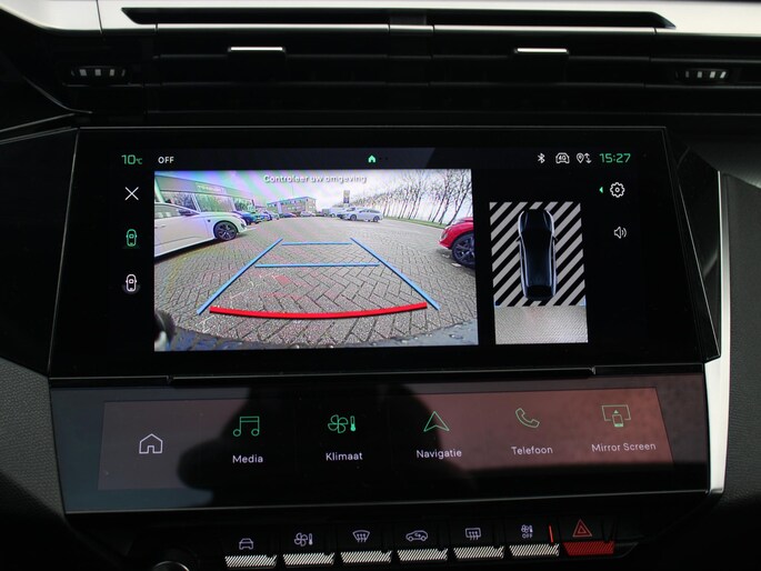 Het systeem controleert alle belangrijke functies en geeft die perfect weer via het digitale dashboard. Nekkramp en verdraaide schouders zijn verleden tijd. Door de achteruitrijcamera is iedere meter achter de auto glashelder in beeld. Adaptive cruise control is veilig en comfortabel. De snelheidsregelaar houdt automatisch afstand tot het voertuig dat voor u rijdt. In één oogopslag weet u de complete systeemstatus van deze auto. Dankzij Connected Services. Het full map navigatiesysteem zorgt ervoor dat u snel en ontspannen op uw bestemming aankomt. Wat u ook in deze auto kunt vinden zijn achteropkomend verkeer waarschuwing, electronic climate control, draadloos opladen, DAB ontvangst, keyless entry en automatisch dimmende binnenspiegel.