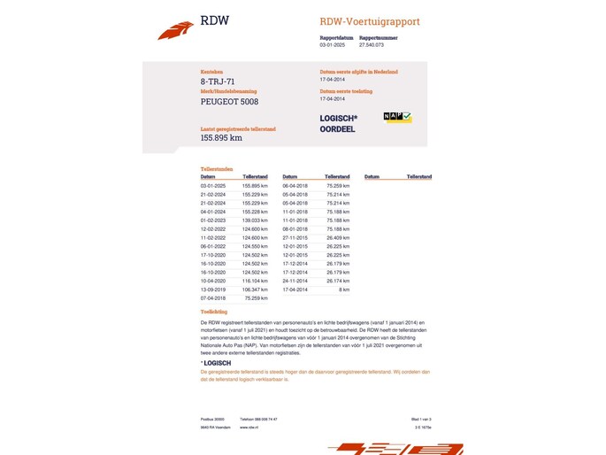 Kilometerstand gecontroleerd