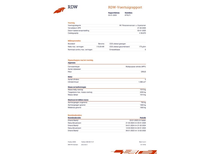 | Carrosserie | MPV (5 deuren) |