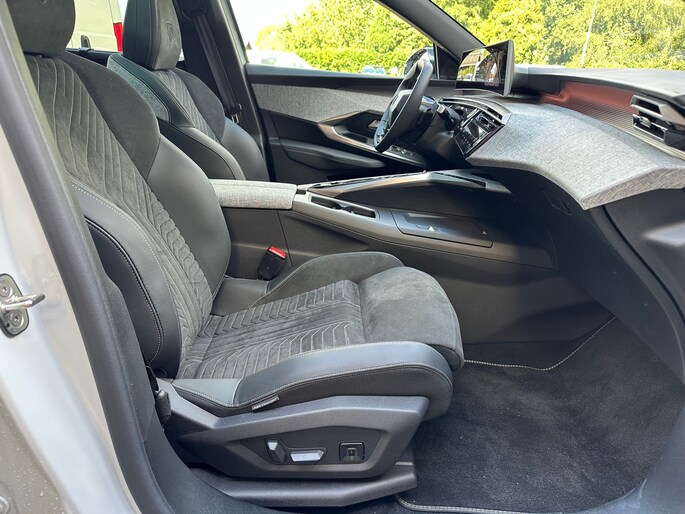 Kijk naar de zelfbewuste vormgeving. Ontdek de vernieuwende technologie aan boord. De Peugeot e-5008 is een unieke elektrische auto. U hoort slechts het lichte gezoem van de elektromotor tijdens het rijden. Deze auto is bijna nieuw, ondanks dat hij uit 2025 komt; hij heeft slechts 8500 kilometer afgelegd. De krachtige motor geeft deze Peugeot uitstekende prestaties. Koud of niet, de stoelverwarming met massagefunctie, stuurverwarming en verwarmbare achterbank maken elke rit comfortabel. De elektrische achterklep opent met een druk op de knop, zodat u gemakkelijk toegang heeft tot de bagageruimte. Het glazen panoramadak laat u genieten van een wijds uitzicht en meer lichtinval. Lekker hoor, zo'n derde zitrij! Genoeg plek voor het hele team. Tot de uitrusting van deze Peugeot behoren ook 19 inch lichtmetalen velgen, Full LED koplampen, geluidsisolerende ramen, in delen neerklapbare achterbank, LED-achterlichten en verstelbare lendensteunen. Het gebruik van de 360 graden camera op deze auto zorgt voor een groter gezichtsveld en helpt de dode hoeken te elimineren. Adaptive cruise control is veilig en comfortabel. De snelheidsregelaar houdt automatisch afstand tot het voertuig dat voor u rijdt. Handig en veilig: Connected Services. Alle vitale functies en data van de auto checkt u via de app op uw smartphone. Een goede veiligheidsvoorziening is de stuurbediening voor belangrijke functies. De auto is natuurlijk voorzien van een full map navigatiesysteem en het audiosysteem biedt glasheldere geluidskwaliteit dankzij DAB-ontvangst. Klik de smartphone in de houder en de draadloze telefoonlader zorgt voor een volle accu. Met electronic climate control, regensensor, keyless entry en bagage afdekhoes is deze auto helemaal compleet. De Peugeot e-5008 is ook voorzien van ADAS. Deze Advanced Driver Assistence Systems fungeren als extra ogen en oren: ze houden voor u de weg in de gaten en grijpen in wanneer dat nodig is. Dat de auto steeds meer taken van de bestuurder overneemt, merkt u bijvoorbeeld aan het systeem voor verkeersbord-detectie in deze Peugeot. Onbedoeld buiten de rijstrook raken wordt voorkomen door het Lane-keeping systeem. De sensor van het forward collision warning-systeem registreert permanent de afstand tot voorliggers en grijpt in als een botsing dreigt. In deze Peugeot vinden we verder een dodehoekdetectie, hill hold functie, brake assist, vermoeidheidsherkenning en bandenspanningcontrolesysteem. Zuinig, stil, voordelig... de redenen voor elektrisch rijden zijn eindeloos. Maar het meest overtuigend is nog altijd een proefrit. Bel ons voor een afspraak!
