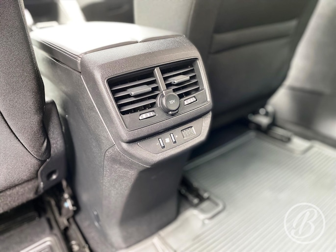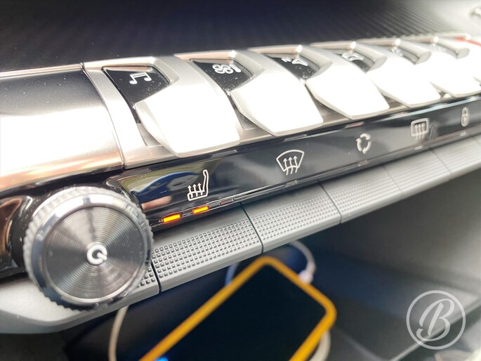 - Middenarmsteun tussen de voorstoelen met verlicht en gekoeld opbergvak