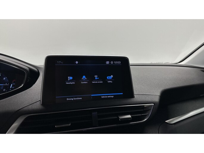 Snelheid, omgevingsinfo, navigatie en communicatie... Het digitale dashboard geeft alles realtime weer. Altijd achter zicht, nooit meer nekkramp! De achteruitrijcamera maakt het supermakkelijk. Vergeten af te sluiten? Bandenspanning onvoldoende? De speciale app geeft u direct een seintje met behulp van Connected Services. U kunt tijdens de rit uw ogen steeds op de weg houden, want het audiosysteem (met DAB!) en het full map navigatiesysteem kunt u bedienen vanaf het stuur of met spraak. Gedoe met kabels en stekkers in de sigarettenaansteker is voorbij. De aanwezige draadloze oplaadmogelijkheid voor telefoons zorgt voor wireless recharging van uw smartphone. Met automatische airconditioning, regensensor, cruise control, keyless entry, automatisch dimmende binnenspiegel en lederen stuur is deze Peugeot helemaal compleet.