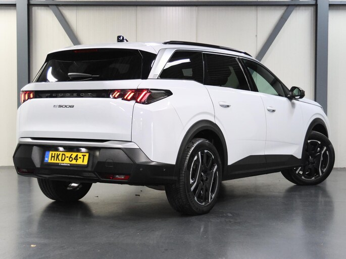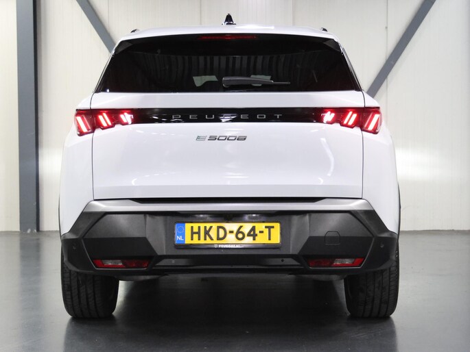 Met de Peugeot e-5008 kiest u voor het rijplezier van de toekomst. De volledig elektrische aandrijflijn zorgt voor krachtige prestaties en een sensationeel acceleratievermogen. De modernste techniek is toegepast om u in alle rust en stilte van de rit te laten genieten. Daarbij zult u zien dat de tijd om de accu's op te laden enorm meevalt, en dankzij de flinke actieradius hoeft u dat ook niet zo vaak te doen. Aan een fijn opwarmertje in de kille dagen is gedacht, in de vorm van een verwarmd stuurwiel. De veelzijdigheid van deze Peugeot e-5008 kent haast geen grenzen. Zo tovert u er heel simpel nog eens twee zitplaatsen bij, dankzij de derde zitrij. Bij de rijke uitrusting horen ook 19 inch lichtmetalen velgen, LED koplampen, in hoogte verstelbare passagiersstoel, in delen neerklapbare achterbank, LED-achterlichten en snelheidsafhankelijke stuurbekrachtiging.