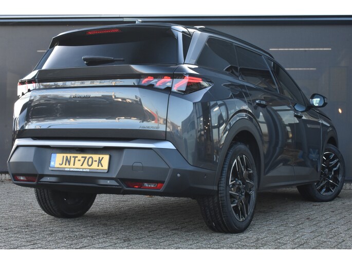 Als een echte Franse auto onderscheidt ook deze Peugeot 5008 zich met zijn doordachte vormgeving en uitstekende rijkwaliteiten. Op de teller van deze auto staat slechts 2600 kilometer. Minder vaak tanken? Dat gaat lukken, dankzij de hybride motor die zowel op brandstof als elektriciteit werkt. Een mooie combi, die merkbaar is in de portemonnee. Met het comfort van het verwarmbare stuurwiel, de voorstoelen inclusief massagefunctie en de achterbankverwarming benadrukt deze auto zijn positie als een ware verwenauto. Een praktische extra is de elektrisch bedienbare achterklep die opent en sluit met een druk op de knop. Overdag een weidse zichthoek en 's avonds het lichtspel in de binnenruimte: dat geeft het glazen panoramadak! Als u meer mensen mee moet nemen, is dat geen enkel bezwaar dankzij de derde zitrij. In deze auto profiteert u onder andere ook van: 19 inch lichtmetalen velgen, Full LED koplampen, geluidsisolerende ramen, in delen neerklapbare achterbank, LED-achterlichten en verstelbare lendensteunen. De 360 graden camera biedt een beter zicht bij slechte weersomstandigheden, waardoor u beter kan anticiperen op mogelijke gevaren. Adaptive cruise control houdt de ingestelde snelheid vast en houdt afstand tot het voertuig voor u. Intelligente spraakbediening herkent uw commando's en voert opdrachten snel en soepel uit. Connected Services voegt nog meer comfort en veiligheid toe aan deze auto. Nooit meer de weg zoeken en ontspannen arriveren bij uw reisdoel. Met het full map navigatiesysteem zit u veilig en ontspannen in de auto. De uitrusting van deze Peugeot is met electronic climate control, DAB ontvangst, regensensor, keyless entry, automatisch dimmende binnenspiegel en bagage afdekhoes behoorlijk compleet. Het zal u verbazen hoe deze auto in staat is om voor u de omgeving en het verkeer om u heen in de gaten te houden. In het instrumentarium kunt u bovendien de verkeersborden zien die u onderweg tegenkomt. Zo helpt deze Peugeot u om veiliger te rijden. Het Lane-keeping systeem doet precies wat nodig is: waarschuwen en corrigeren bij onbedoelde overschrijding van de rijstrooklijnen. Forward collision warning waarschuwt bij een dreigende aanrijding en vermindert de gevolgen van een ongeval. Ook helpen het dodehoekdetectie, hill hold functie, brake assist, vermoeidheidsherkenning en bandenspanningcontrolesysteem, uw rit tot een veilige rit te maken. Nieuwsgierig geworden? Neem snel contact op om een afspraak te maken.