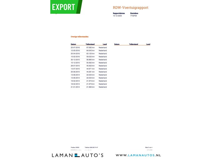 • Logische tellerstand met NAP (RDW gecontroleerd)