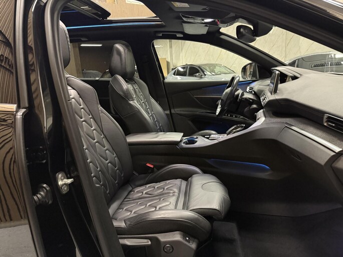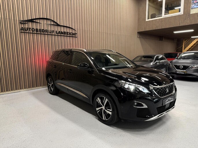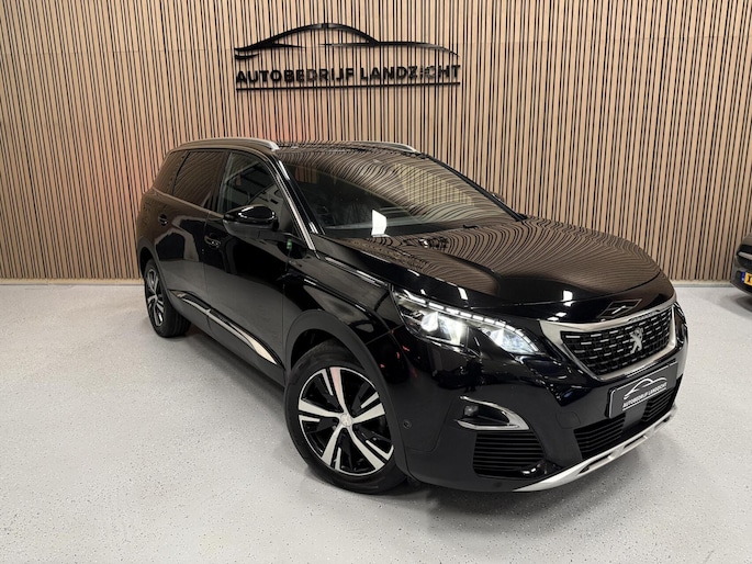 Peugeot 5008 1.6 GT Line (2018) automaat met 165 pk. Luxe en ruime 7-persoons SUV, voorzien van panoramadak, navigatie, achteruitrijcamera en lederen interieur. Comfortabel, sportief en rijk uitgerust.