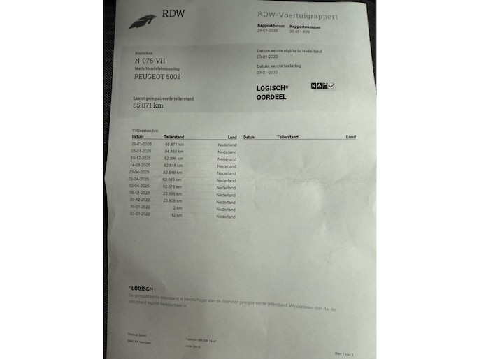 Kilometerstand gecontroleerd