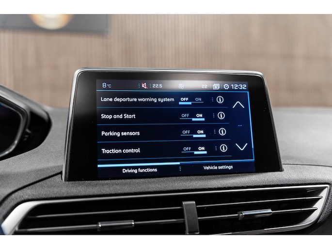 Zoals u mag verwachten van deze Peugeot 5008 is hij uitgerust met een reeks aan actieve veiligheidssystemen. Een belangrijke bijdrage aan de veiligheid onderweg levert de verkeersbord-detectie. Het Lane-keeping systeem zorgt voor een automatisch constante positie binnen de rijstrook. Afdwalen is uitgesloten. Om de veiligheid extra te vergroten, heeft deze Peugeot 5008 Brake Assist. In een noodsituatie treedt dit hulpremsysteem in werking wanneer extra remkracht nodig is. Met voorzieningen als hill hold functie en bandenspanningcontrolesysteem, bent u altijd veilig onderweg.