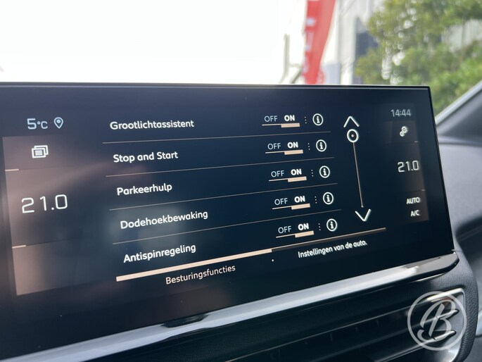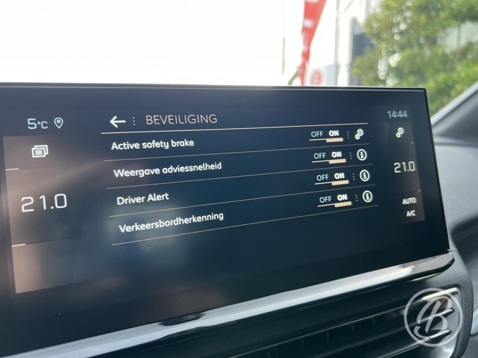 Aan boord van deze Peugeot houden verschillende geavanceerde systemen voor u de weg in de gaten. Ze waarschuwen u voor noodsituaties en kunnen in een aantal gevallen ook zelf ingrijpen. In het instrumentarium laat de verkeersborddetectie de actuele verkeersborden zien. Mooi binnen de lijnen van de rijstrook blijven? Het Lane-keeping systeem helpt altijd een handje. Veilig inhalen en invoegen wordt bevorderd door de actieve dodehoekdetectie. De auto is ook uitgerust met forward collision warning system, hill hold functie, brake assist, vermoeidheidsherkenning en bandenspanningcontrolesysteem.