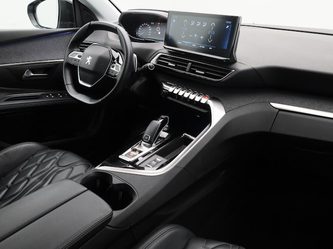 De achteruitrijcamera maakt inparkeren gemakkelijker dan ooit. Laat u onderweg niet afleiden, de bediening van het audiosysteem en ook het full map navigatiesysteem gaat met knoppen op het stuur en met spraak. De automatische airconditioning zorgt onder alle omstandigheden voor een prettige temperatuur. Het drukke verkeer eist onderweg al uw aandacht op. Daarom is het goed dat deze Peugeot is voorzien van diverse systemen die u assisteren tijdens de rit. Een automatisch inschakelbare verlichting neemt het waar als het donker wordt of gaat schemeren, en schakelt dan automatisch de verlichting in. Op dezelfde manier "ziet" de regensensor de eerste spatjes regen en schakelt dan de ruitenwissers in, en als het harder gaat regenen zet hij de ruitenwissers ook in een snellere stand. Voor de lange ritten is de cruise control een verademing. U bent in deze Peugeot ook voorzien van sportstuur met schakelpaddels, keyless entry en automatisch dimmende binnenspiegel.