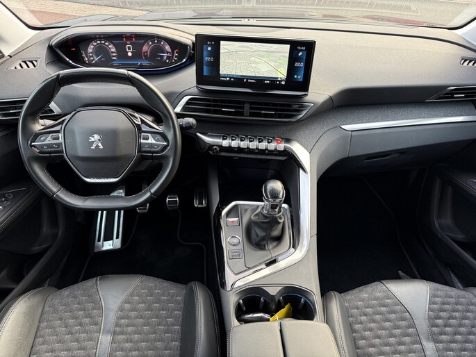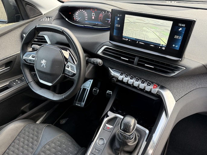 Het digitale dashboard is een perfecte bijrijder. Alles benodigde informatie is permanent zichtbaar of opvraagbaar. De 360 graden camera op deze auto wordt verzorgd door vier geavanceerde camera's. Het biedt garantie van uitstekende beeldkwaliteit. Dankzij Connected Services weet u precies waar uw auto geparkeerd staat. Ook andere functies, zoals bandenspanning en brandstofniveau, zijn via de app altijd onder handbereik. Zuinig, veilig en ontspannen op pad: dat kan dankzij het aanwezige navigatiesysteem. De automatische airconditioning zorgt voor een prettige binnentemperatuur. De Peugeot is standaard voorzien van: draadloos opladen, regensensor, cruise control, keyless entry, automatisch dimmende binnenspiegel en lederen stuur.