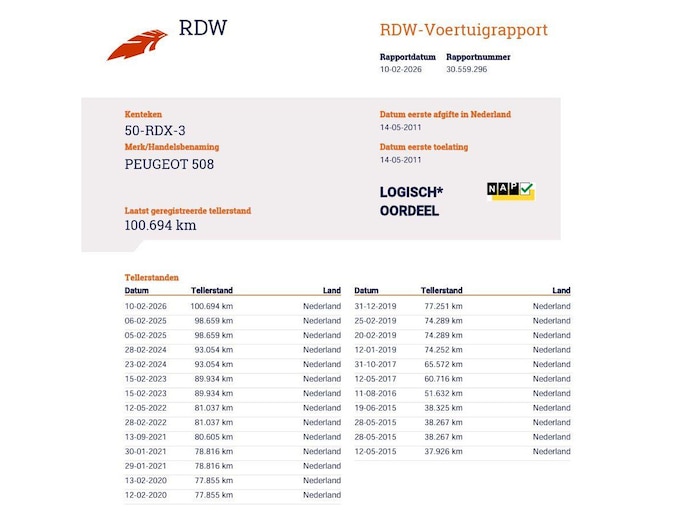 Kilometerstand gecontroleerd