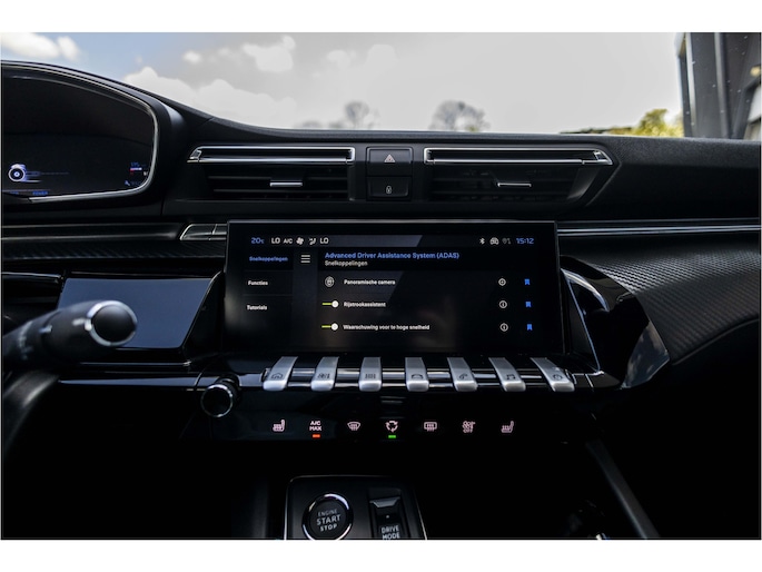 Alle functies die u onderweg nodig heeft, worden permanent geregistreerd en zijn afleesbaar op het digitale dashboard. Elk van de vier camera's op deze auto draagt bij aan het creëren van een onbelemmerd uitzicht van 360 graden rondom de auto. Adaptive cruise control is veilig en comfortabel. De snelheidsregelaar houdt automatisch afstand tot het voertuig dat voor u rijdt. De speciale app verbindt met Connected Services, die de status van vitale functies bijhoudt en waarschuwt als u bijvoorbeeld moet tanken, de bandenspanning moet controleren of olie moet bijvullen. Een goede veiligheidsvoorziening is de spraakbediening en stuurbediening voor belangrijke functies. De auto is natuurlijk voorzien van een navigatiesysteem en het audio-installatiesysteem biedt glasheldere geluidskwaliteit dankzij DAB-ontvangst. Met WIFI-hotspot, automatische airconditioning, draadloos opladen, regensensor, keyless entry en automatisch dimmende binnenspiegel is deze Peugeot helemaal compleet.
