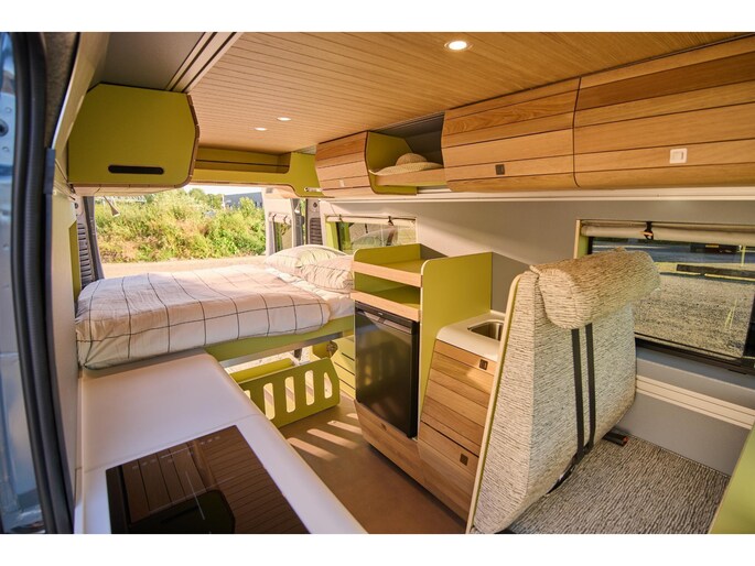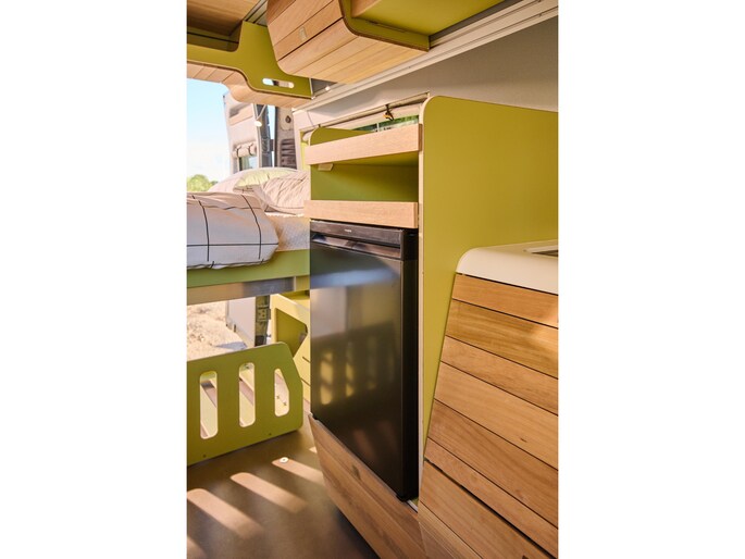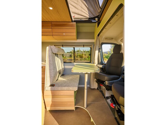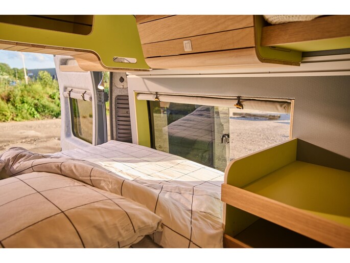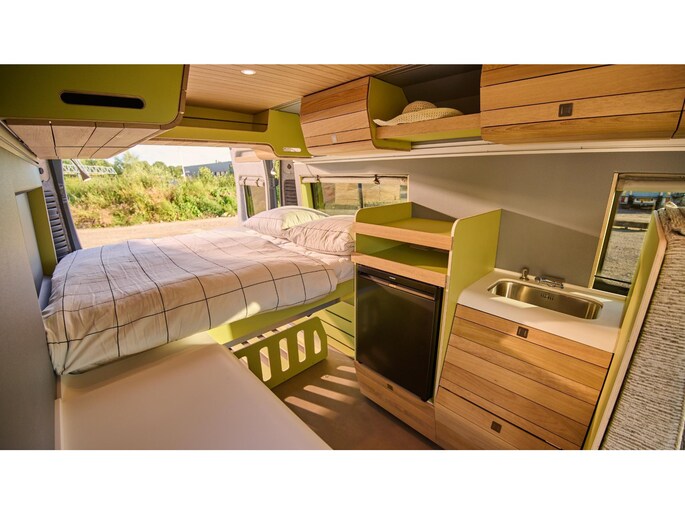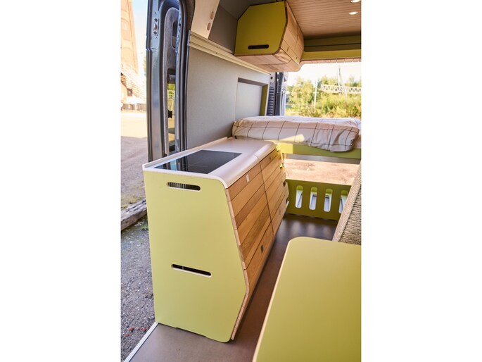 VAN-Jorn bouwt eigenwijze campers voor eigenzinnige mensen. Het opvallende design van de interieur modules – geïnspireerd door organische vormen uit de natuur – geven de buscampers een unieke warme uitstraling. De inrichting van de campers is modulair, wat betekent dat de indeling blijvend flexibel is. Het interieur is opgebouwd uit hoogwaardige materialen zoals echt hout, en zijn ingericht voor comfort en veel leefruimte.