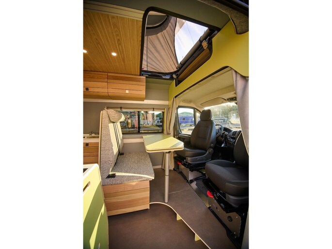 De ready-to-ride lijn van VAN-Jorn zijn volledig uitgevoerd in wisselende samenstellingen. Deze buscampers, gebaseerd op een nieuwe Peugeot Boxer, zijn per direct te verkrijgen. Zo kunt u binnen enkele weken op reis met uw eigen unieke camper.