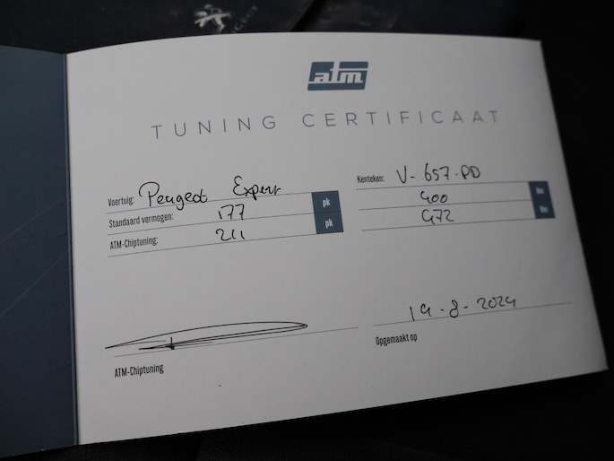 Expert 2.0 BlueHDI 177 PK vanaf fabriek (Wat Peugeot de 180 PK noemt) maar middels ECU optimalisatie nu 211 PK vermogen, waarvan certificaat aanwezig. Exterieurkleur Rich Oak metallic (donkerbruin), Bumpers in carrosseriekleur, Lichtmetalen velgen, Apple Carplay / Android Auto appstreaming Google Maps, Flitsmeister, Whatsapp etc, RVS sidebars, Cruise control, Audio stuurwielbediening, Bluetooth met audiostreaming, Airco, Parkeersensoren, Mistlampen, F1 schakelflippers aan het stuurwiel, Zo meeneemprijs zonder garantie, Prijs is exclusief BTW.