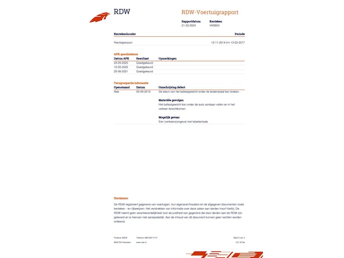 Kilometerstand gecontroleerd