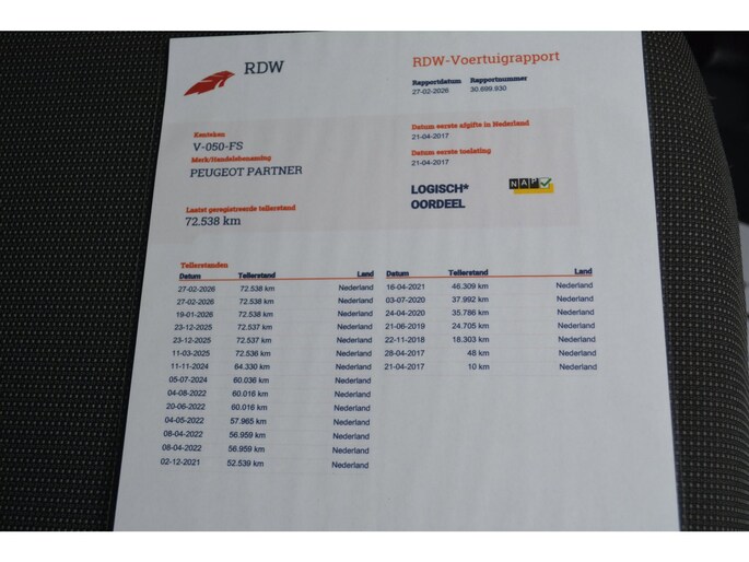 Kilometerstand gecontroleerd