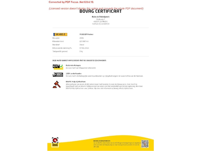 BOVAG Afleverbeurt: Ja