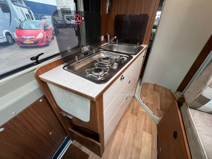 Zeer mooie en luxe uitgevoerde Possl Globecar 640 Campscout Plus uit 2018 met aantoonbaar 65.887km gereden. Gebouwd op basis van een Citroen Jumper 2.0 turbodiesel met 163pk en emissieklasse Euro 6 met AdBlue. Beschikt over 4 slaapplaatsen (waarvan 2 voor kleine kinderen) en 4 gordelplaatsen. De volwassenen hebben de beschikking over enkele bedden (lengte 190cm) met tussenstuk te wijzigen in een groot 2 persoonsbed. De Possl is voorzien van een sfeervol en efficiënt ingericht interieur. In de cabine vindt u plissé verduistering, draaibare voorstoelen, airconditioning, cruise control, elektrische ramen, een mediasysteem met Bluetooth en Apple CarPlay AndroidAuto. Het leefgedeelte is ruim van opzet met een uitschuifbare tafel, TV en fijne stoelen met stof alcantara bekleding. De keuken heeft een uitklapbaar werkblad met 2 pits gascomfort en wasgelegenheid en legio kastjes op alle keukenspullen netjes op te ruimen. De riante koelkast is voorzien van een dito vriesgedeelte. De badkamer is centraal geplaatst met rondom een roldeur wand. Verder is deze voorzien van een douche, toilet, wasgelegenheid, spiegel en kast. Alle platte ramen (met PrivacyGlass) zijn voorzien van verduistering horren gordijnen en zijn uitzetbaar. 2 dakramen zijn ook aanwezig. Aan kastruimte geen gebrek, rondom zijn er veel aanwezig alsmede een hangkast. Aan de buitenzijde van Globecar treft u een fietsenrek, luifel, zonnepaneel, achteruitrijcamera, hordeur, elektrische instap, een soft-close schuifdeur, lichtmetalen velgen en een trekhaak aan. Voor de verwarming (ringverwarming) en warm water is een Truma combi-boiler geïnstalleerd. Een omvormer zorgt er samen met het zonnepaneel voor dat u off-grid ook kan genieten van deze fantastische camper. Kortom een fantastische en compleet uitgevoerde buscamper welke garant staat voor nog vele jaren vakantieplezier. Uiteraard verzorgen wij een uitgebreide uitleg alvorens u de weg op gaat. Voor de volledige fotoreportage, kijkt u even op www.stoopman.nl