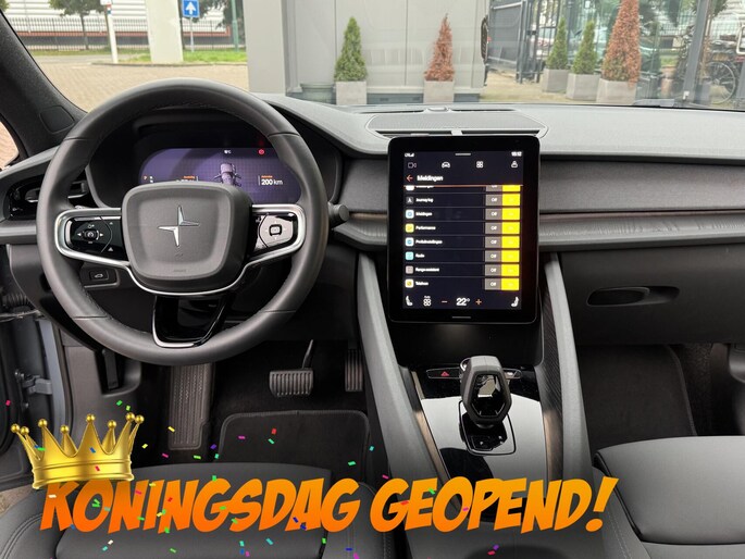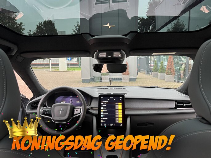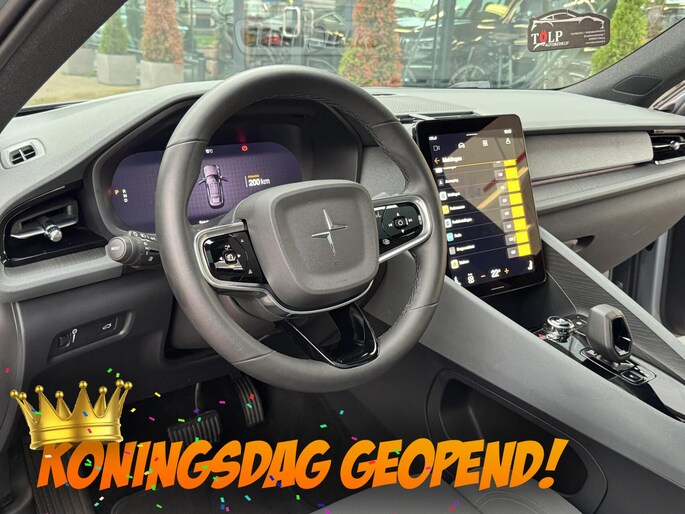 Een cockpit, een informatiecentrum... Wat is de cabine eigenlijk niet? Dankzij het digitale dashboard bent u van alles op de hoogte. De 360 graden camera op deze auto wordt verzorgd door vier geavanceerde camera's. Het biedt garantie van uitstekende beeldkwaliteit. Adaptive cruise control houdt de ingestelde snelheid vast en houdt automatisch afstand tot uw voorligger. Appen met uw auto? Geen probleem. U kunt van overal contact opnemen, de functies controleren en activeren. U bedient 'm met remote services. Formidabele geluidskwaliteit en een compleet spectrum van klank wordt geleverd door het high performance audiosysteem. Met full map navigatiesysteem, WIFI-hotspot, automatische airconditioning, draadloos opladen, DAB ontvangst en regensensor is deze Polestar helemaal compleet.