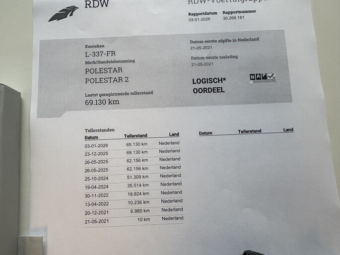 Kilometerstand gecontroleerd