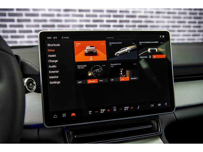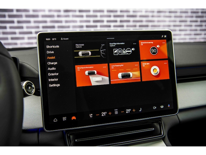 Long Range Single motor 100 kWh Pilot | Plus | | Adaptive cruise control + Pilot assist | Lane change assist | 360 camera | Harman Kardon Premium Sound | Head-up display | Pixel Led koplampen + adaptief grootlicht | Elektrisch bedienbare achterklep met voetsensor | 12-voudig verstelbare stoelen | Elektrisch verstelbare rugleuning achter | | Stoel + stuurwielverwarming | verwarmde achterbank | 22kw AC Laden | 21" LM |