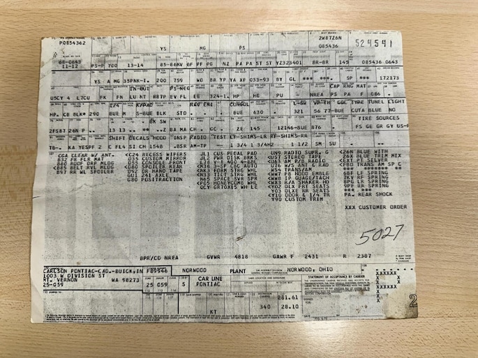 Niet alleen verkeert deze Trans Am in uitzonderlijke staat, maar hij wordt ook geleverd met een enorme hoeveelheid documentatie, inclusief het originele broadcast sheet, wat hem een fantastische vondst maakt voor verzamelaars en liefhebbers.