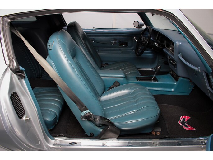 AANGEDREVEN DOOR EEN MATCHING-NUMBERS 400 CUI V8-MOTOR, GEKOPPELD AAN EEN TURBO HYDRAMATIC AUTOMATISCHE TRANSMISSIE. AFGEWERKT IN PRACHTIG GRIJS MET EEN SCHITTEREND BLAUW INTERIEUR, IS DEZE TRANS AM EEN ECHTE ICOON UIT HET MUSCLE CAR-TIJDPERK.