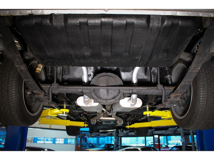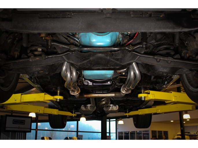 Ook de onderkant van deze Trans Am stelt niet teleur en verkeert in een schone conditie, met lichte oppervlakteroest, wat normaal is voor een niet-gerestaureerde auto van deze leeftijd. De aangepaste uitlaatspruitstukken zijn gepolijst en vormen niet alleen een visueel spektakel, maar klinken ook geweldig.