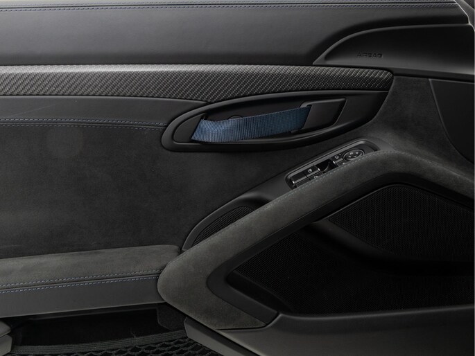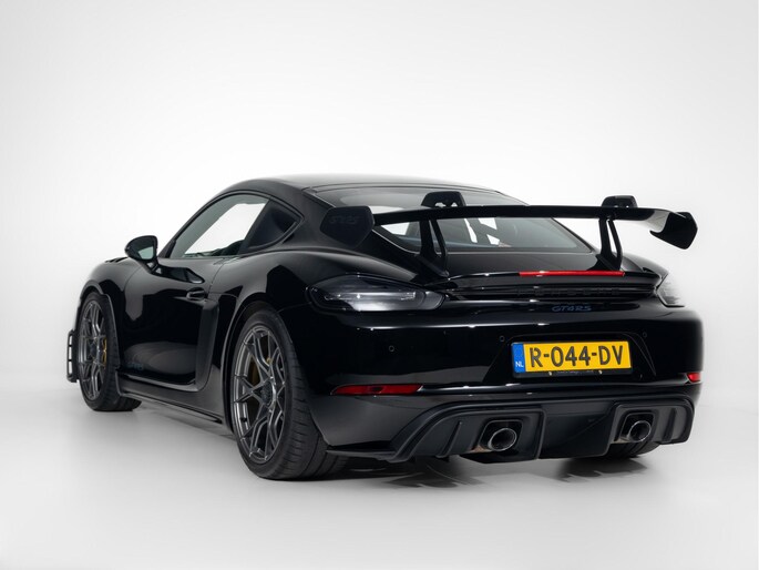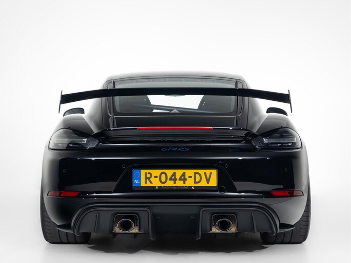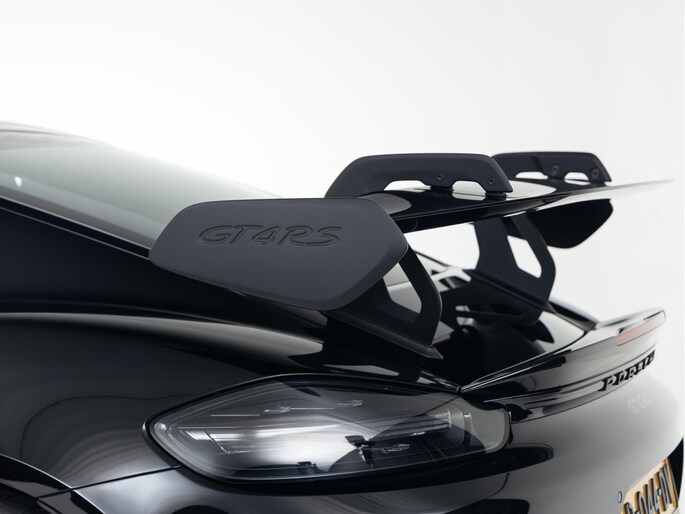 Deze Porsche 718 GT4 RS in de kleur Zwart heeft slechts 5.967 kilometers gereden. De Porsche onderscheidt zich onder andere door unieke opties, zoals; Porsche Ceramic Composite Brake (PCCB), Rolkooi in diepzeeblauw, Clubsport Pakket en het Sport Chrono Pakket. De lak wordt beschermd door de Xpell full coverage.