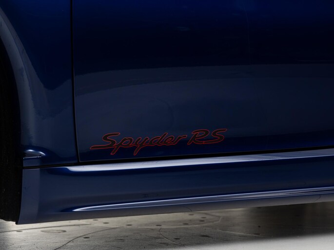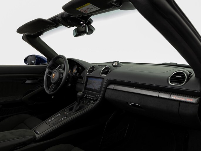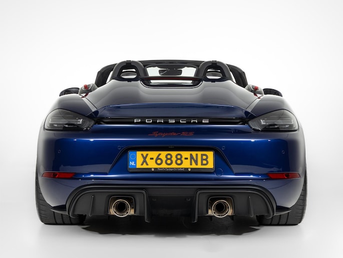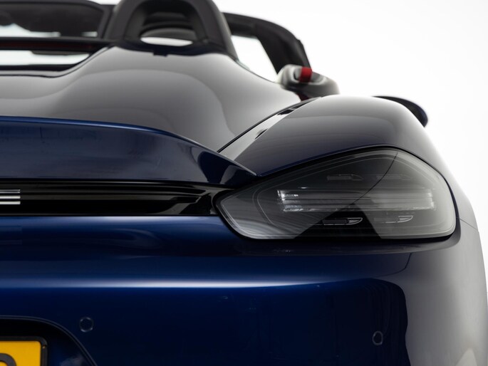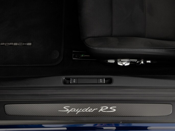 Deze Porsche 718 Spyder RS in de kleur Gentiaanblauw Metallic heeft slechts 8.245 kilometers gereden. De Porsche onderscheidt zich onder andere door unieke opties, zoals; Porsche Ceramic Composite Brake (PCCB), Sport Chrono Pakket, Liftsysteem vooras en Adaptieve sportstoelen Plus (18-voudig, electrisch). Uiteraard is dit exemplaar nog verder te verfraaien door hoogwaardige accessoires van Porsche Tequipement.