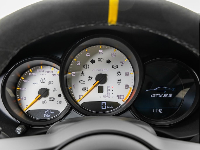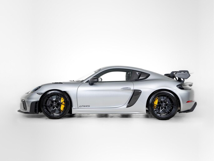 Deze Porsche 718 Cayman GT4 RS in de kleur GT-zilver metallic is nog nieuw en ongeregistreerd. De Porsche onderscheidt zich onder andere door unieke opties, zoals; Clubsport Pakket, Porsche Ceramic Composite Brake (PCCB), Sport Chrono Pakket en het Weissach pakket. Uiteraard is dit exemplaar nog verder te verfraaien door hoogwaardige accessoires van Porsche Tequipement.