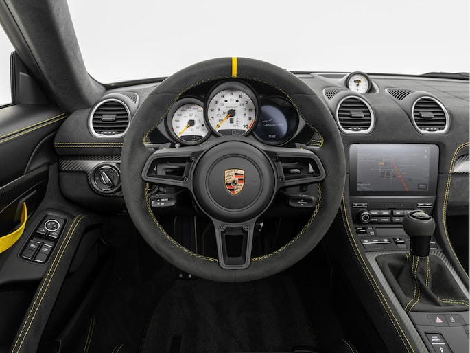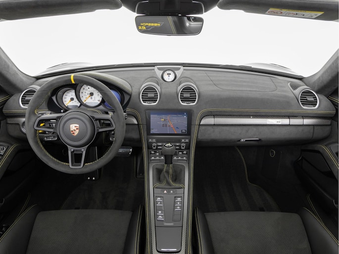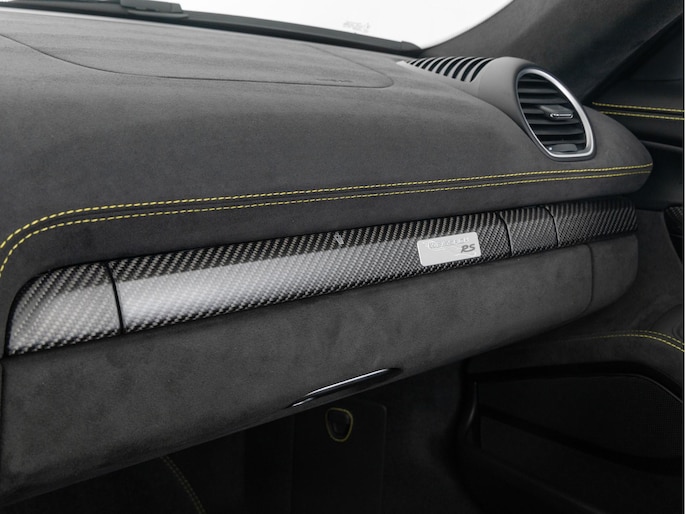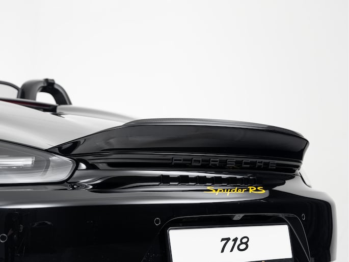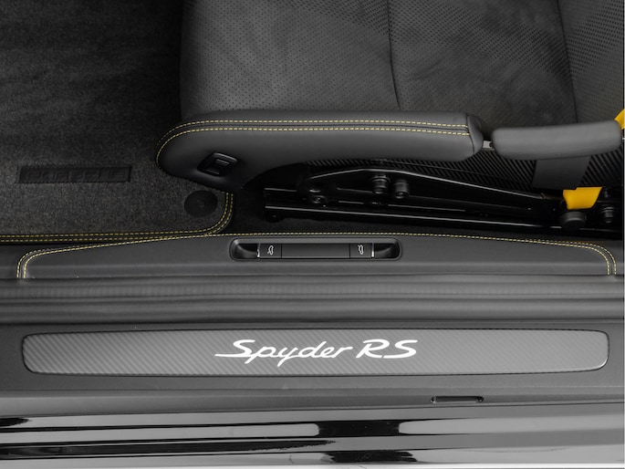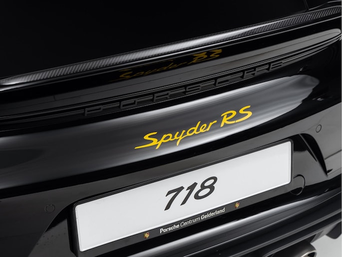 Deze Porsche 718 Spyder RS in de kleur Zwart is nog nieuw en ongeregistreerd. De Porsche onderscheidt zich onder andere door unieke opties, zoals; Weissach-pakket, Porsche Ceramic Composite Brake (PCCB), Eindafwerking dashboard leder/Race-Tex en het Sport Chrono Pakket. Uiteraard is dit exemplaar nog verder te verfraaien door hoogwaardige accessoires van Porsche Tequipement.