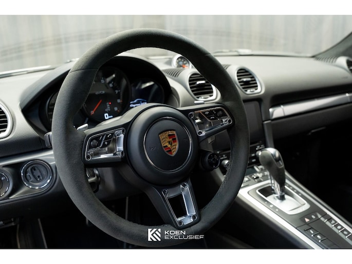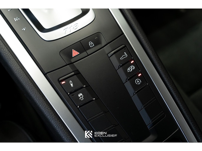 Porsche Doppelkupplung (PDK), stoelverwarming, cruise control, Porsche Active Suspension Management (PASM), multifunctioneel stuurwiel inclusief stuurwielverwarming, Led-koplampen inclusief Porsche Dynamic Light System Plus (PDLS Plus), homelink (garagedeuropener), ParkAssistent voor en achter inclusief camera, stuurbekrachtiging plus, elektrisch inklapbare spiegels, BOSE Surround Sound System, Apple CarPlay, zelfdimmende binnen- en buitenspiegels met geïntegreerde regensensor, deksel middenconsole Race-Tex met Porsche embleem, dynamische motorsteunen, sportuitlaat, Porsche Torque Vectoring incl. mechanisch sperdifferentieel (PTV), 20-inch 718 Sport wiel satijnzwart gespoten, wielnaafafdekking met gekleurd Porsche embleem, voorruit met grijze band, hemelbekleding in alcantara, Sport Chrono Pakket, digitale radio, SportDesign Pakket, sporteindpijpen zwart en donkere achterlichten.