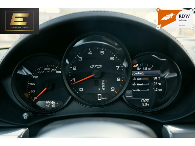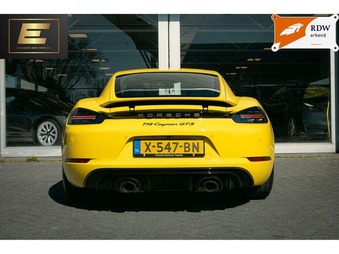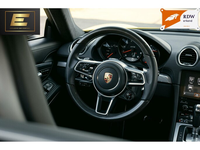 Deze opvallende Porsche 718 Cayman GTS is uitgevoerd in de kleur Racing Yellow met 20 inch satijn zwarte velgen. De auto is voorzien van vele opties zoals stoelverwarming en stoelventilatie, een carbon stuurwiel, het sport chrono pakket, sportplus stoelen met gordels in Racing Yellow, lederen interieur en een achteruitrijcamera. De Porsche heeft de bekende 400pk sterke 4L 6-cilinder achter de stoelen liggen, een midden-motor. Interesse in deze gele Porsche met nog geen tienduizend km op de teller? Mail, bel of WhatsApp ons!