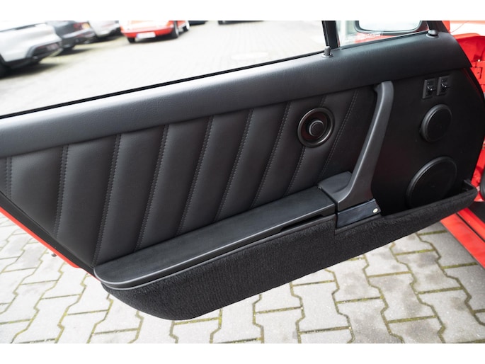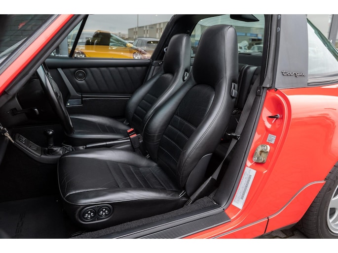 (For English, please scroll down) Porsche 964 C2 targa, uitgevoerd in indisch rood met een zwart interieur.