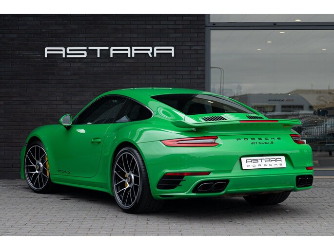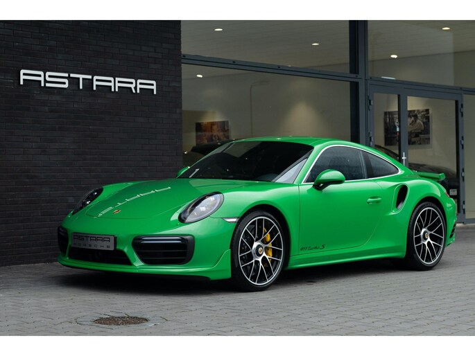Porsche 991.2 turbo S, uitgevoerd in PTS (Paint-to-Sample) Viper Green en een zwart vollederen interieur.