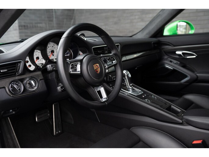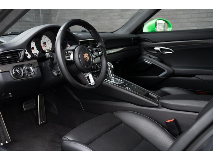 Exterieur in PTS-kleur Viper Green, interieur met veel lederaccenten. Met veel bijzondere opties, zoals het Burmester Surround Sound System, Adaptive Cruise Control, stoelventilatie, aerokit 911 Turbo, etc.