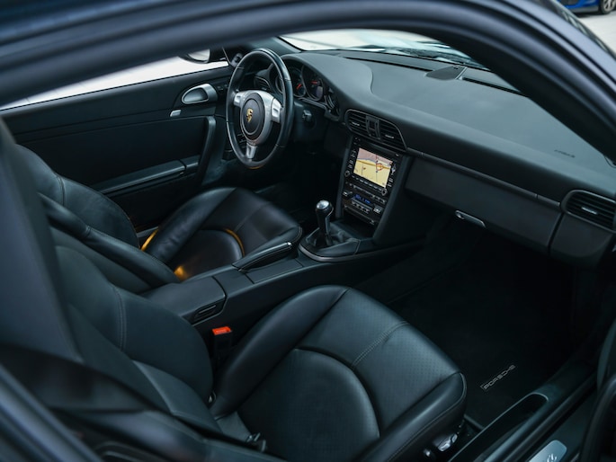 De basisversie van de 997 – simpelweg “Carrera” – was nooit bedoeld als ondergrens, maar als maatstaf. De 3.6-liter atmosferische zescilinder levert 345 pk, gekoppeld aan een handbak die zó mechanisch en direct aanvoelt, dat je hem bijna met gesloten ogen zou kunnen bedienen. Geen vermogensgeweld, geen trucjes. Enkel jij, de auto en de weg. Je voelt het direct bij het wegrijden: de balans, de lichtvoetigheid, het lineaire karakter van de motor. Elke input wordt direct vertaald – het gaspedaal, de koppeling, het stuur. Geen tussenkomst van systemen die het overnemen, corrigeren of filteren. Het is een analoge ervaring in de zuiverste zin van het woord.